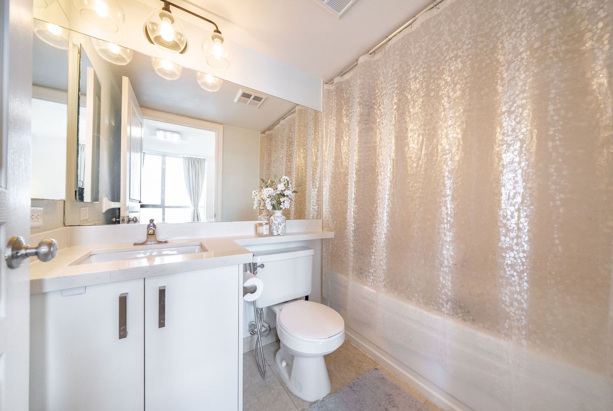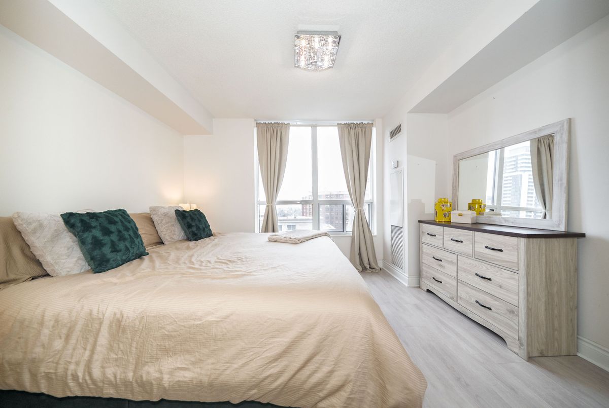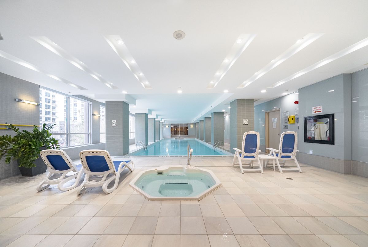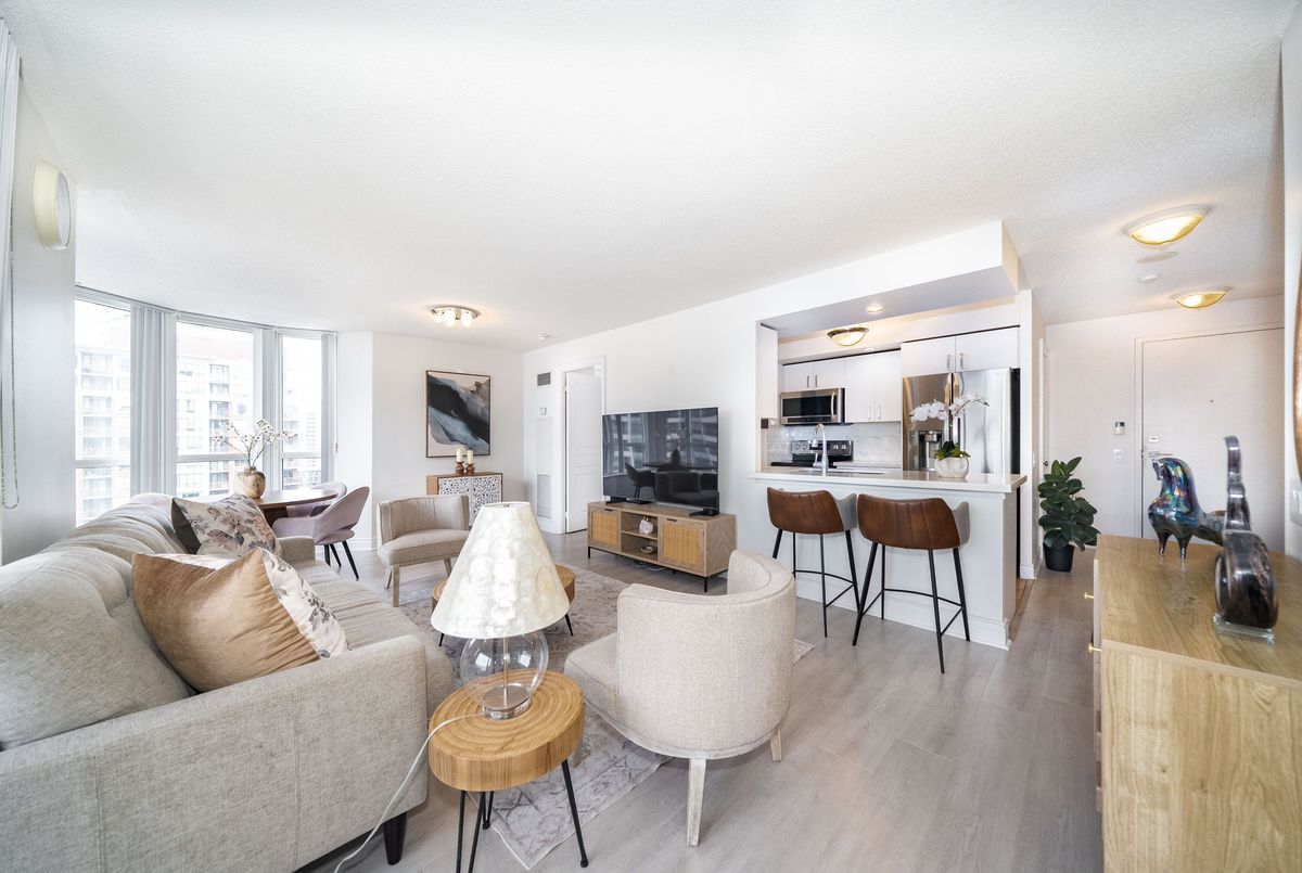 Welcome to Tridel's Grande Triomphe! Recently fully renovated, this bright and spacious corner suite offers afunctional split layout with large windows and an open concept living/dining area. Private balcony with beautiful views. New built-in appliances, full-size washer & dryer, upgraded finishes throughout. Generous primary bedroom features a huge walk-in closet with custom organizer and ensuite bath. Two full bathrooms and excellent storage space. Luxury amenities include 24-hr concierge, indoor pool, sauna, Jacuzzi, gym, party room & guest suites. Steps to Finch Subway, Viva, restaurants, shops and all conveniences. Parking & locker included.