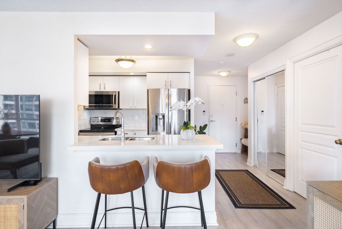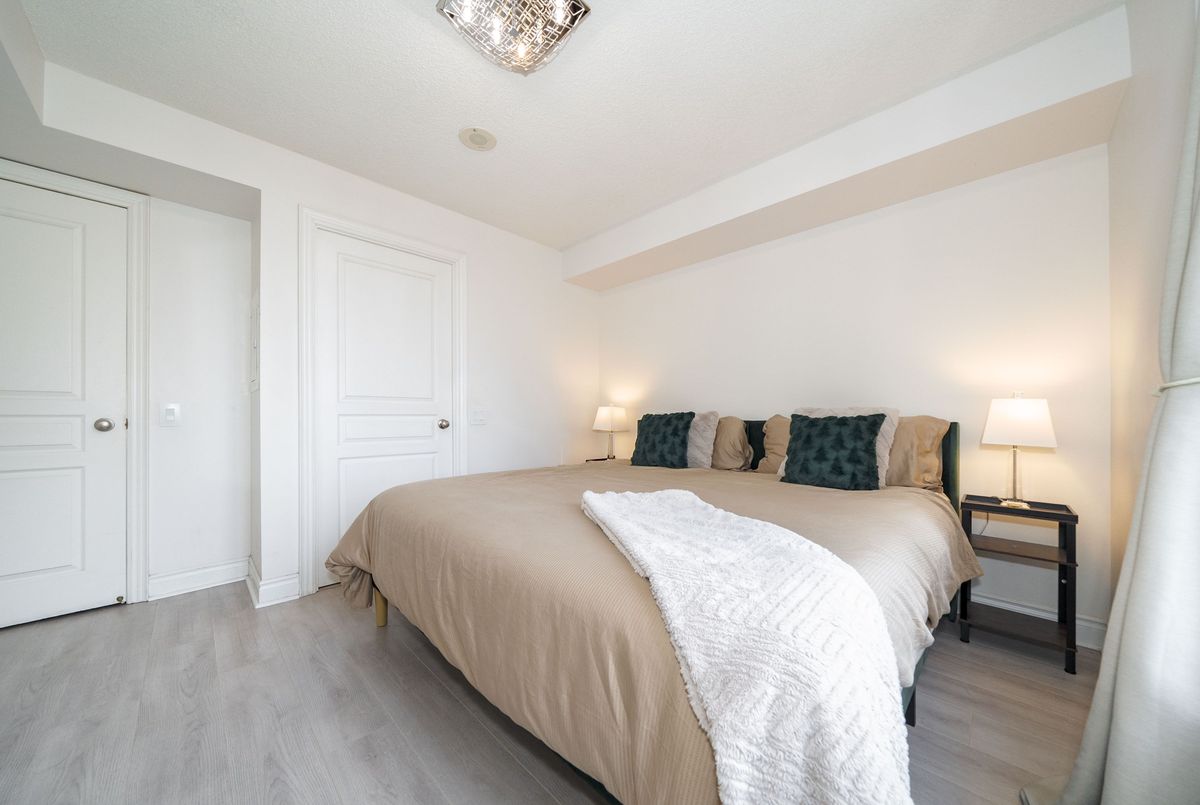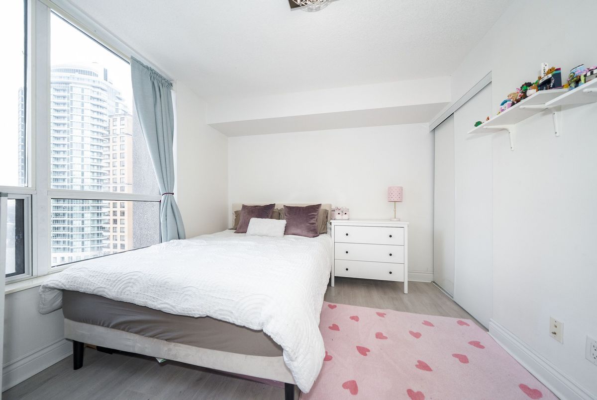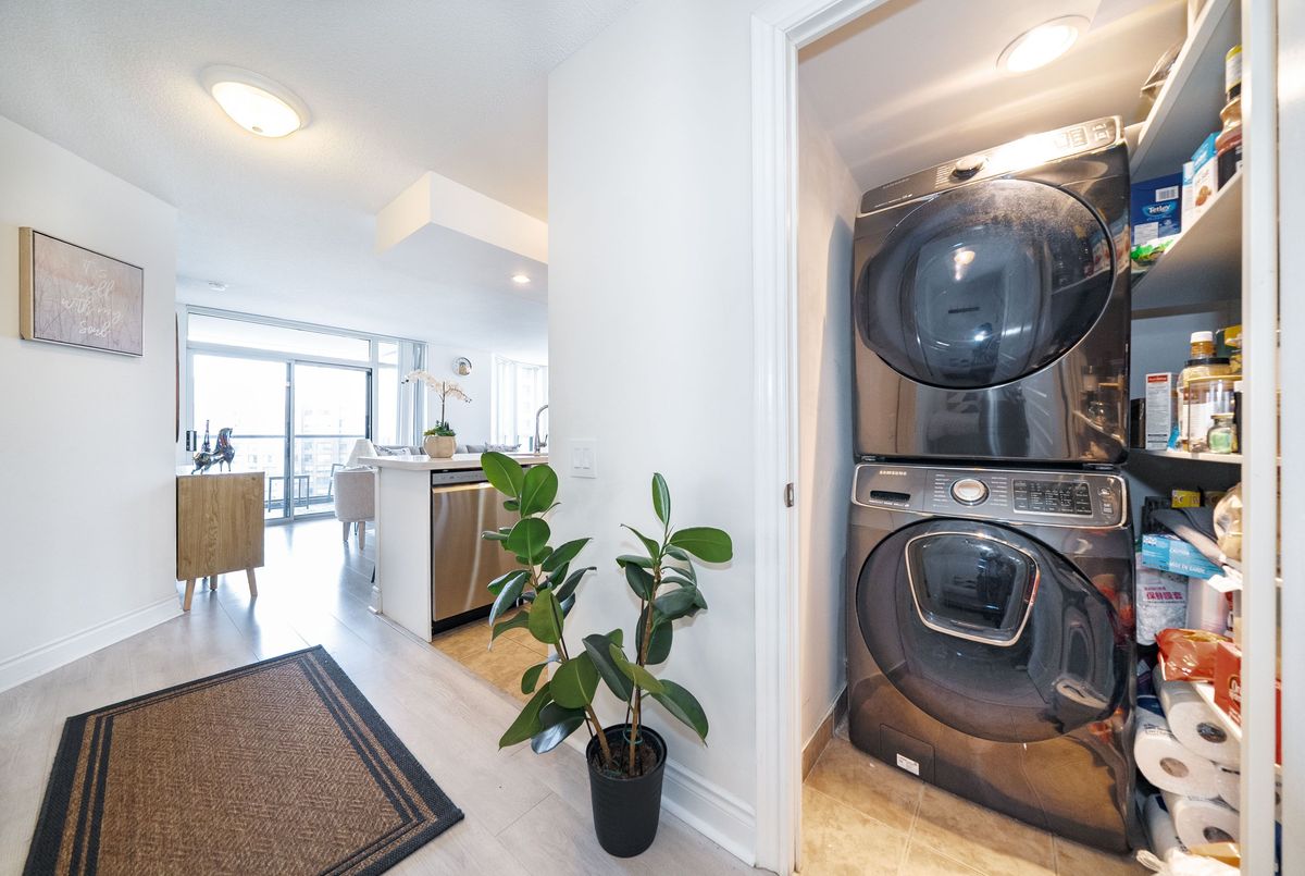 Welcome to Tridel's Grande Triomphe! Recently fully renovated, this bright and spacious corner suite offers afunctional split layout with large windows and an open concept living/dining area. Private balcony with beautiful views. New built-in appliances, full-size washer & dryer, upgraded finishes throughout. Generous primary bedroom features a huge walk-in closet with custom organizer and ensuite bath. Two full bathrooms and excellent storage space. Luxury amenities include 24-hr concierge, indoor pool, sauna, Jacuzzi, gym, party room & guest suites. Steps to Finch Subway, Viva, restaurants, shops and all conveniences. Parking & locker included.